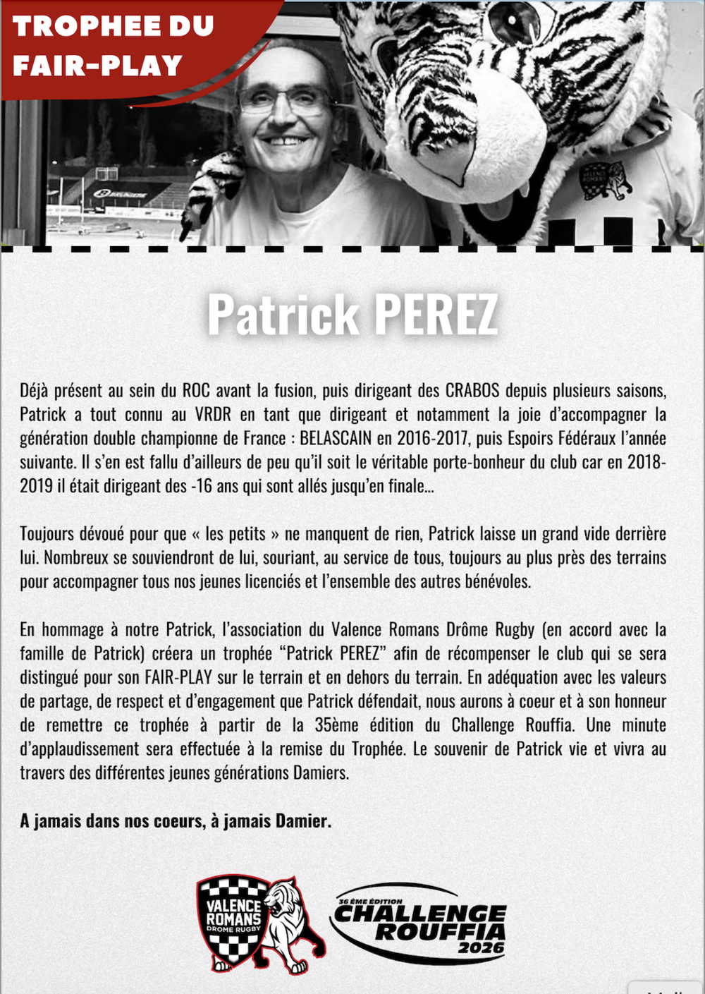 Création du trophée "PATRICK PEREZ" à partir de la 35ème Edition.