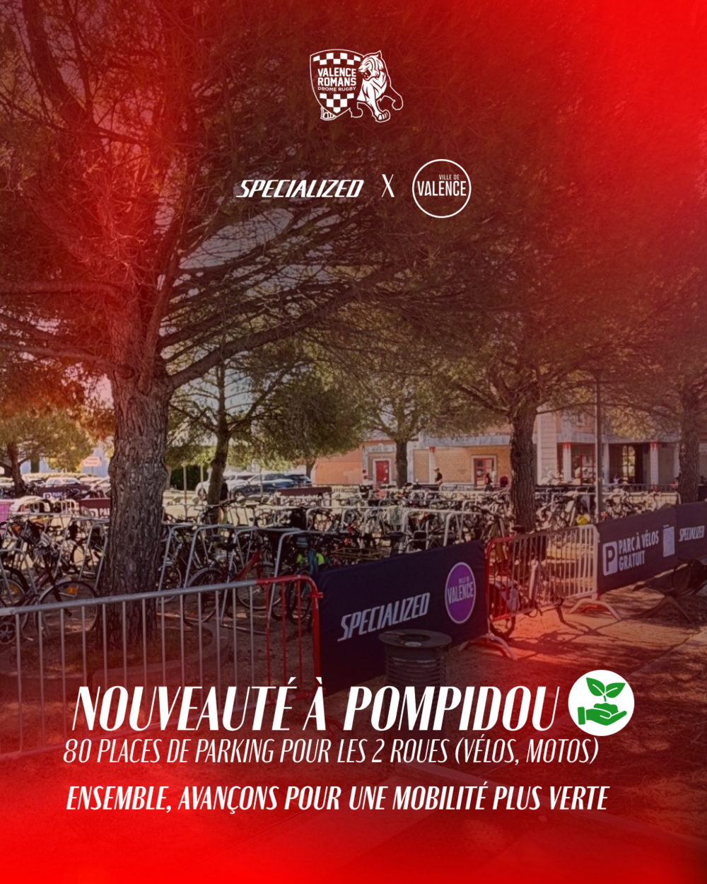 NOUVEAUTÉ : un parking sécurisé 2 roues (80 places pour vélos & motos), mis en place par la Ville de Valence en partenariat avec Specialized, vous attend à droite des guichets billetterie.
