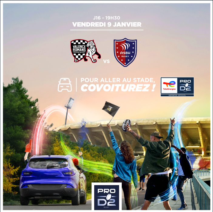 Rendez-vous sur la plateforme officielle StadiumGO pour t'aider à trouver ou proposer un trajet : https://bit.ly/covoiturage-valence-romans