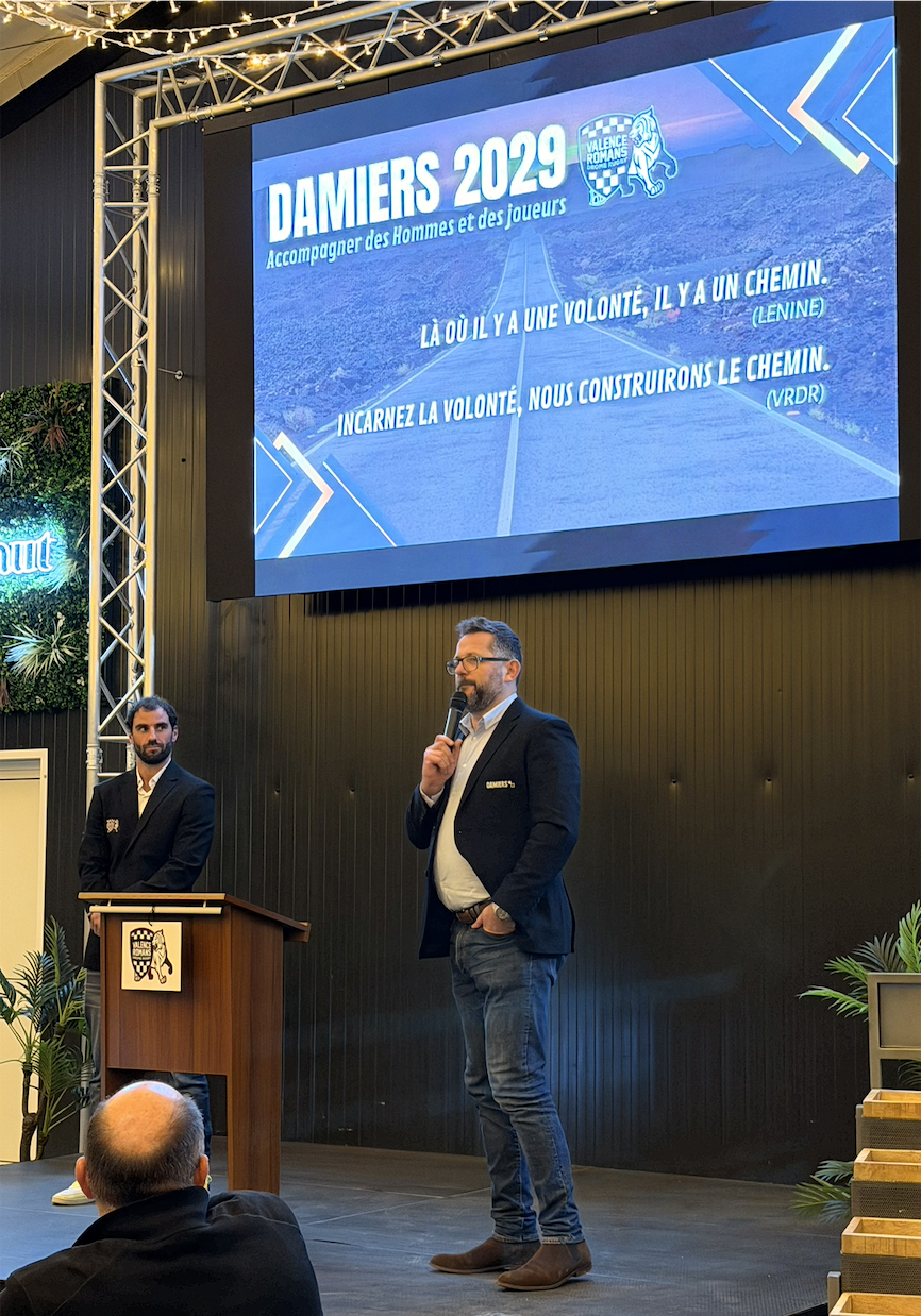 Retrouvez les photos de la présentation autour du Projet Sportif Damiers 2029, présenté par Jonathan WISNIEWSKI notre Directeur Sportif et nos Présidents Laurent BEAUGIRAUD & Jean-Pierre CHEVAL.