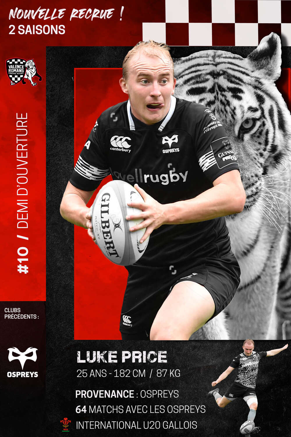 - Luke PRICE - Demi d'ouverture - 25 ans - Gallois