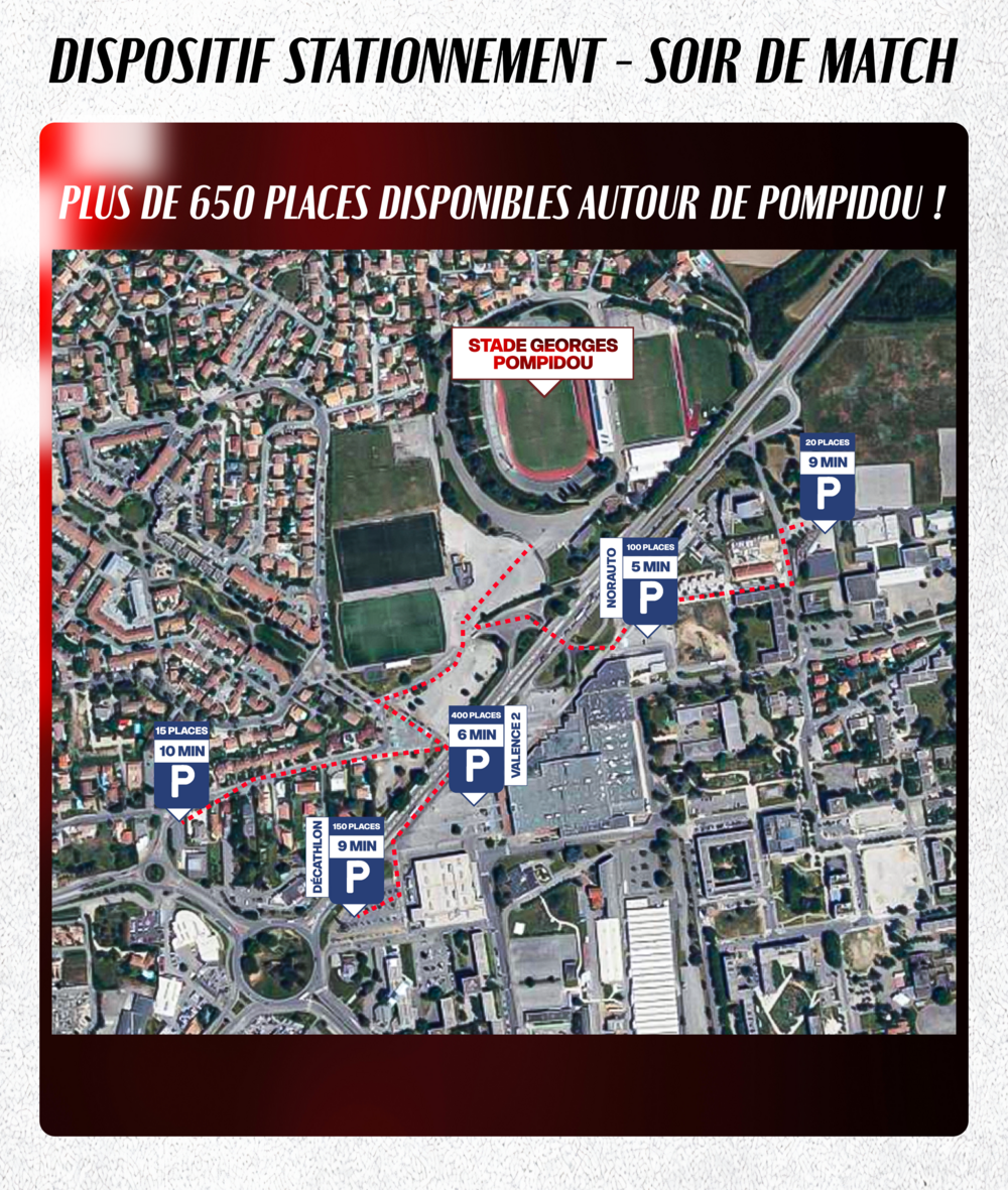 Parking gratuit à proximité du Stade Pompidou (Parking Valence 2).